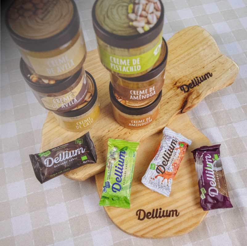 Escolha Dellium e experimente o melhor dos nossos petiscos saudáveis e barras energéticas sem glúten, pensados para o seu bem-estar. Seja você adepto de uma alimentação vegan, sem glúten ou apenas em busca de snacks naturais, nossos produtos foram desenvolvidos para satisfazer até os paladares mais exigentes.Faça parte da Dellium e transforme cada lanche em uma celebração de ingredientes frescos e biológicos. Explore o nosso catálogo e descubra uma maneira saborosa e saudável de se alimentar.
